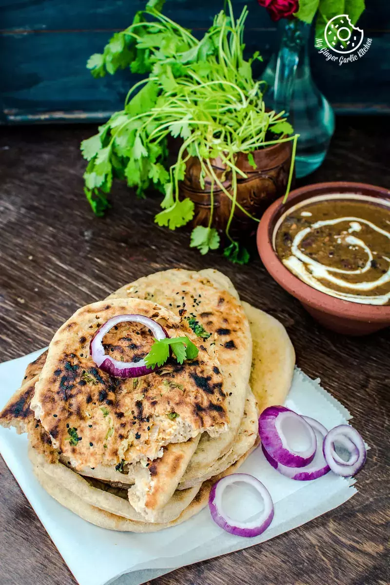 Paneer stuffed bread cooked in tandoor oven
